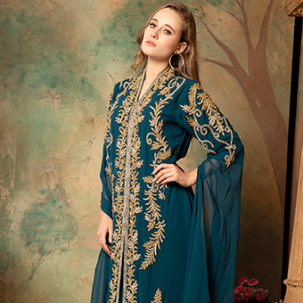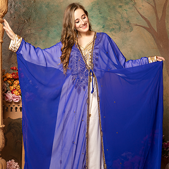 Hasbia White Inner Blue Jacket Moroccan Kaftan with Embroidery Work
